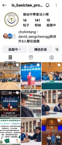 「慈幼普法小隊」積極參與由教青局主辦的《憲法》與《基本法》校園推廣計劃比賽,通過早會短講、海報設計、師生專訪、社交平台經營以及協助舉辦「班際普法知識競賽」等多元形式,廣泛推動校內法律教育。12月4日,《國家憲法日》教育推廣活動中,小隊設置普法工作展示攤位,向中聯辦代表、政府官員及教育界代表介紹了本校的普法成果,並展現學生積極參與普法工作的風采。