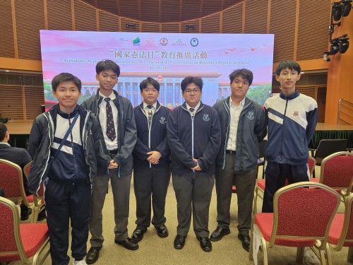 同日,本校派出四名F5學生代表(鄧立人、鄧睿哲、羅綽緯、鍾毅曦)參加2025年全澳校際中學生《憲法》和《基本法》知識線上比賽,榮獲高中組優異獎,彰顯學生卓越的學習成果與法律素養。