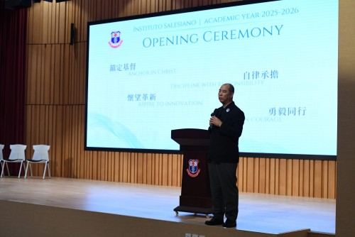 9月1日上午,慈幼中學首次在聖母進教之佑堂隆重舉行2025-2026學年開學典禮。全體師生能齊聚新禮堂,共同迎接新學年的來臨,意義非凡。典禮在全體肅立、齊聲高唱校歌的莊嚴歌聲中拉開序幕。隨後,梁樹榮校長致辭,向全體師生送上新學年的誠摯祝福。他勉勵同學們懷抱理想,勇於挑戰自我,並在學業與品格上不斷精進。同時,梁校長也介紹了本學年的行政架構及新加入慈幼教學團隊的老師,現場師生以熱烈掌聲表達歡迎之意。接著,由葉神父主持祈禱會,帶領全體師生靜心祈求天主賜下祝福,引領新學年的學習與成長。莊嚴的祈禱聲在禮堂中迴盪,讓師生深切感受到慈幼大家庭的凝聚力與信仰精神。