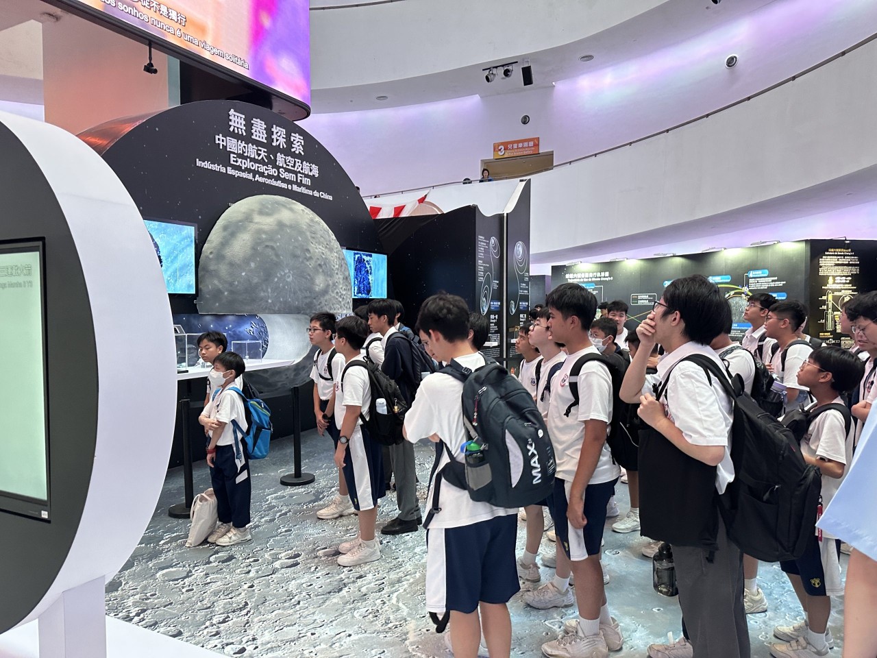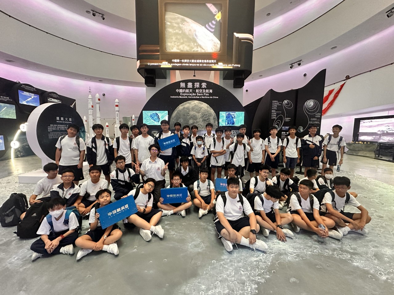 為拓寬學生的科技視野,增進對國家航天、航空及航海發展的認識,本校「科學探究小組」、「STEM創客科技小組(初階班)」及「AI+Python 程式設計競賽與解難班」共41位學生與5位老師,於10月10日放學後前往澳門科學館,參觀由澳門特區政府與國家航天局合辦的「無盡探索——中國的航天、航空及航海」展覽。