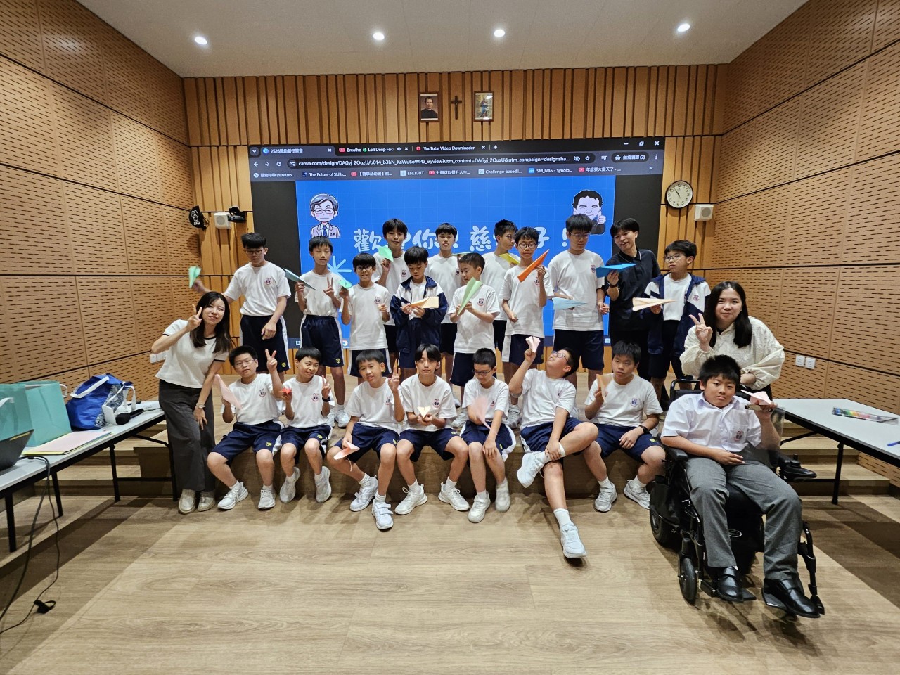 「勇闖我的中學世界」活動中,同學們通過多樣化的體驗,不僅熟悉了慈幼校園及周邊生活的實用資訊,還進一步加深了對校園文化的認識。活動中,同學們齊聲學唱校歌,細細品味歌詞中的深刻意義,從中感受到集體歸屬感與學校文化的傳承。更具意義的是,在「寄語未來的自己」環節中,每位同學懷著對未來的期望,將心中的夢想書寫於紙飛機上,象徵攜夢啟航,為他們的中學生涯注入無限希望與動力。