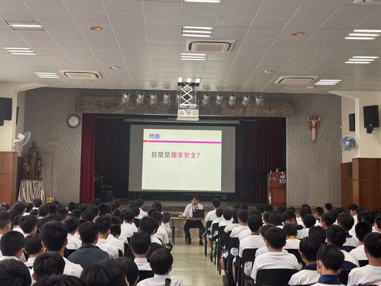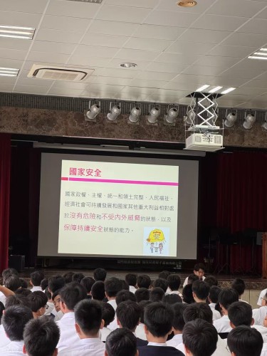 2025年10月21日(星期二)上午8時35分至9時15分,本校教導處邀請澳門法務局代表專員來校,於中學禮堂為F.1、F.2十班同學舉辦「維護國家安全法」講座,參與師生約300人。