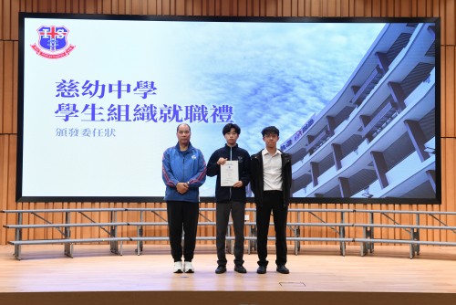 本年度共有20個學生組織完成換屆,包括學生會、班長會、校史學會、童軍、慈青同樂會、多媒體小組、攝影組、校報社、校園電視台、扶少團、風紀隊、圖書館服務組、銀樂隊、升旗隊,以及科學、DAT、商科、數學、中文、視藝學會等,合共287位同學在28位指導老師的帶領下,肩負583個職務,展現出學生積極參與校園事務的熱忱與責任感。