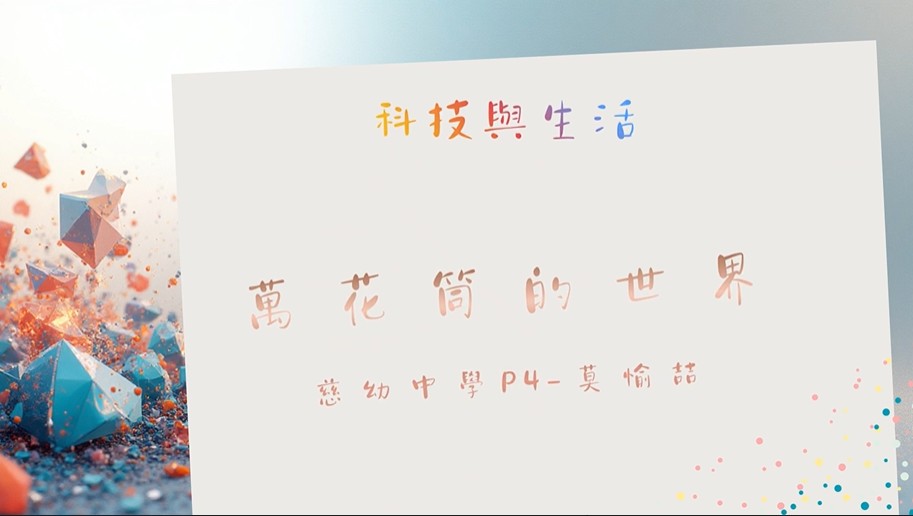 本次得獎作品以 「生活中的萬花筒」 為題,從日常生活情境出發,結合理論與實際觀察,清楚呈現萬花筒背後的科學概念。作品內容架構完整,敘事條理清楚,並以淺顯易懂的方式闡述科學知識,展現出良好的科學探究能力與表達能力。
