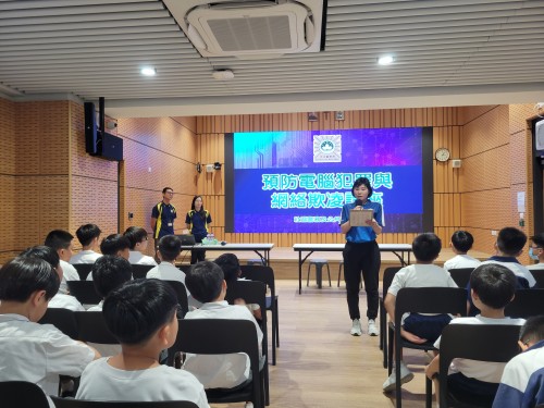 講座中,司警代表透過短片及真實案例,說明網絡世界中潛藏的各種風險,並闡述網絡欺凌對個人與社會所帶來的不良影響,同時提醒學生須注意行為界限,避免誤觸刑法。