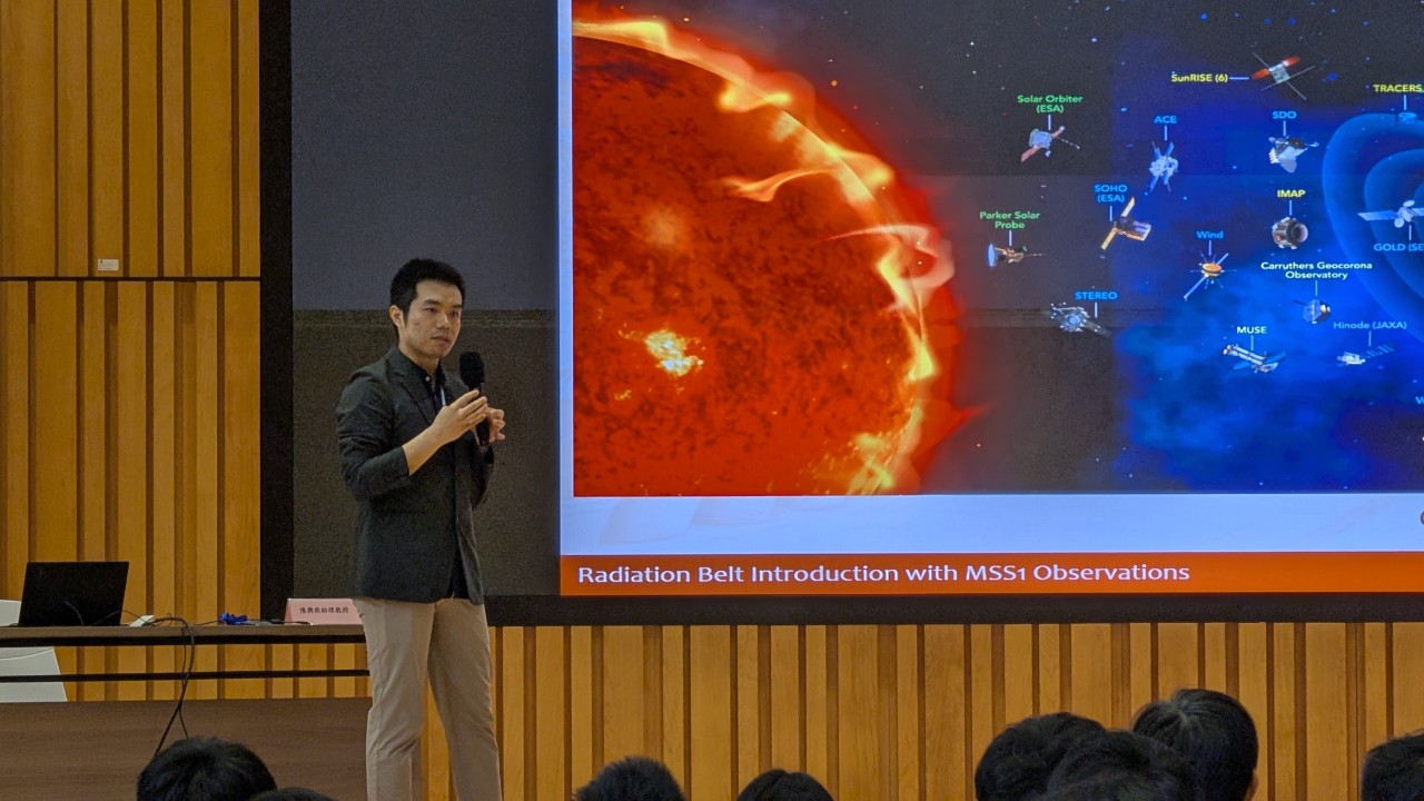 講座重點介紹了由澳門本土參與研發的「澳科一號」衛星。作為雙星系統,MSS1 在地磁與輻射探測上實現了技術突破:測量精度較開始至今提升了16 倍;透過展示「澳科一號」的電子測量頻譜,揭示了內輻射帶中獨特的「斑馬紋」現象;講座展示了數值模擬(Numerical Simulation)與實際觀測數據的高度吻合,證明了目前物理模型的可靠性。