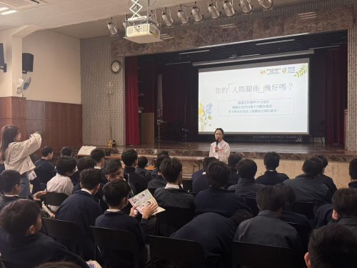 講座內容深入淺出,緊扣青少年成長階段常見的人際關係議題。講者首先與學生探討健康親密關係的基礎元素,包括尊重、信任與平等,並指出這些要素是維繫良好關係的重要根本。透過貼近學生生活的情境案例,引導同學分辨真正的關懷與以愛為名的過度控制,從而提升對不良關係警訊的辨識能力。