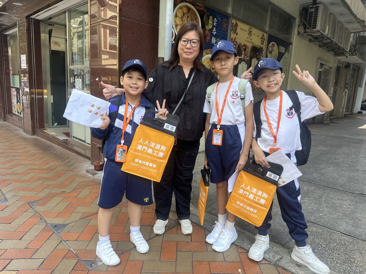 本校小學義工隊於2025年11月16日在楊家瑩老師、鄧振宇老師、梁家諾老師及學生輔導員Lan姐姐的帶領下,參與了由本澳人人流浪狗澳門義工團組織的賣旗活動,此次活動的目的是為該機構屬下犬舍155隻毛孩籌集糧食及醫療經費,以小小的力量為有需要的毛小孩出一分力。